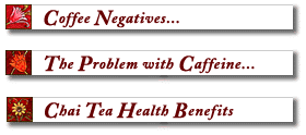 Please visit the Chai! Message Board to post your comments. There you can see what others are saying about chai as a substitute for coffee, participate in the discussions, and find more reader's comments. |